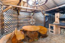 Основной дом площадью 292,3 кВ м. Предназначен для круглогодичного проживания. Очень тёплый. Отапливается двумя электрическими котлами по 12 кВт каждый в автоматическом режиме. Также в системе отопления находится дровяная, угольная, брикетная чугунная печь, которую можно подключать вместо эл. котлов. Фундамент- бетонная армированная плита.