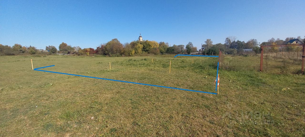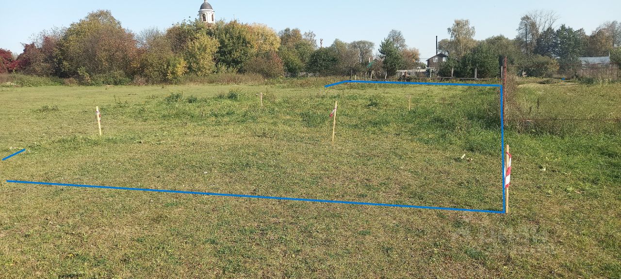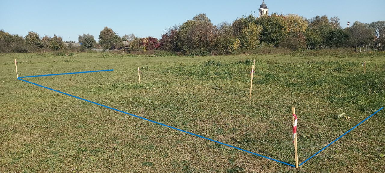 Участок правильной прямоугольной формы с красивым видом на церковь.