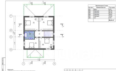 На 1 этаже размещен просторный холл, кухня-гостиная, санузел, гардеробная, кабинет и просторная терраса, а на 2 этаже 4 спальни, санузел и просторный холл.