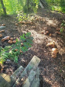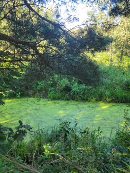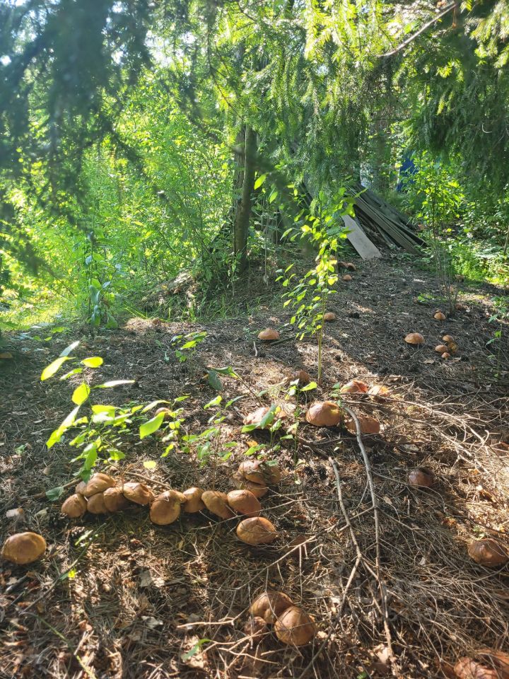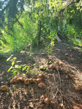 На участке есть водоём и лесополоса где растут маслята и подберёзовики.