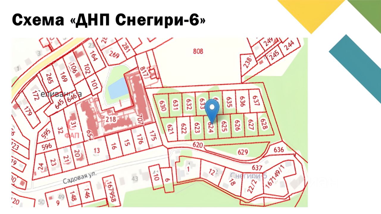 Территория поделена на 18 участков, 17 из которых запланированы для постройки дачных индивидуальных домов (в среднем по 15 соток). Один участок предусматривается как земли общего пользования (дороги, внутренняя территория).