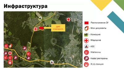 Это территория для создания комфортной среды для проживания, вписанная в окружающий зеленый ландшафт. Рядом развитая инфраструктура, магазины, транспортная доступность отличная. Есть возможность подключения электричества и газа.