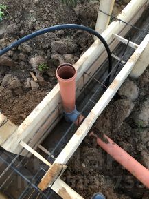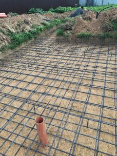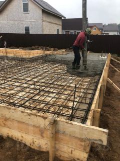 1) фундаментная плита с подъемом на 900 мм и отмосткой