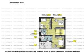 2-й этаж: спальня- 13,6 кв.м., спальня-16,1 кв.м., спальня-7,6 кв.м, ванная, санузел, балкон.