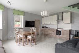 1-й этаж: просторная кухня-столовая с выходом на террасу, гостиная с камином, гостевая комната, санузел с душем и стиральной машиной, гардеробная, котельная.