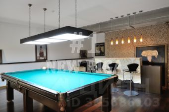 Цоколь - винная комната, бильярдная, с/у, тренажерный зал, котельная, серверная, оборудование под бассейном, гараж+навес на 6 м/м, отдельный блок для персонала : прихожая, кухня, 2 спальни, санузел