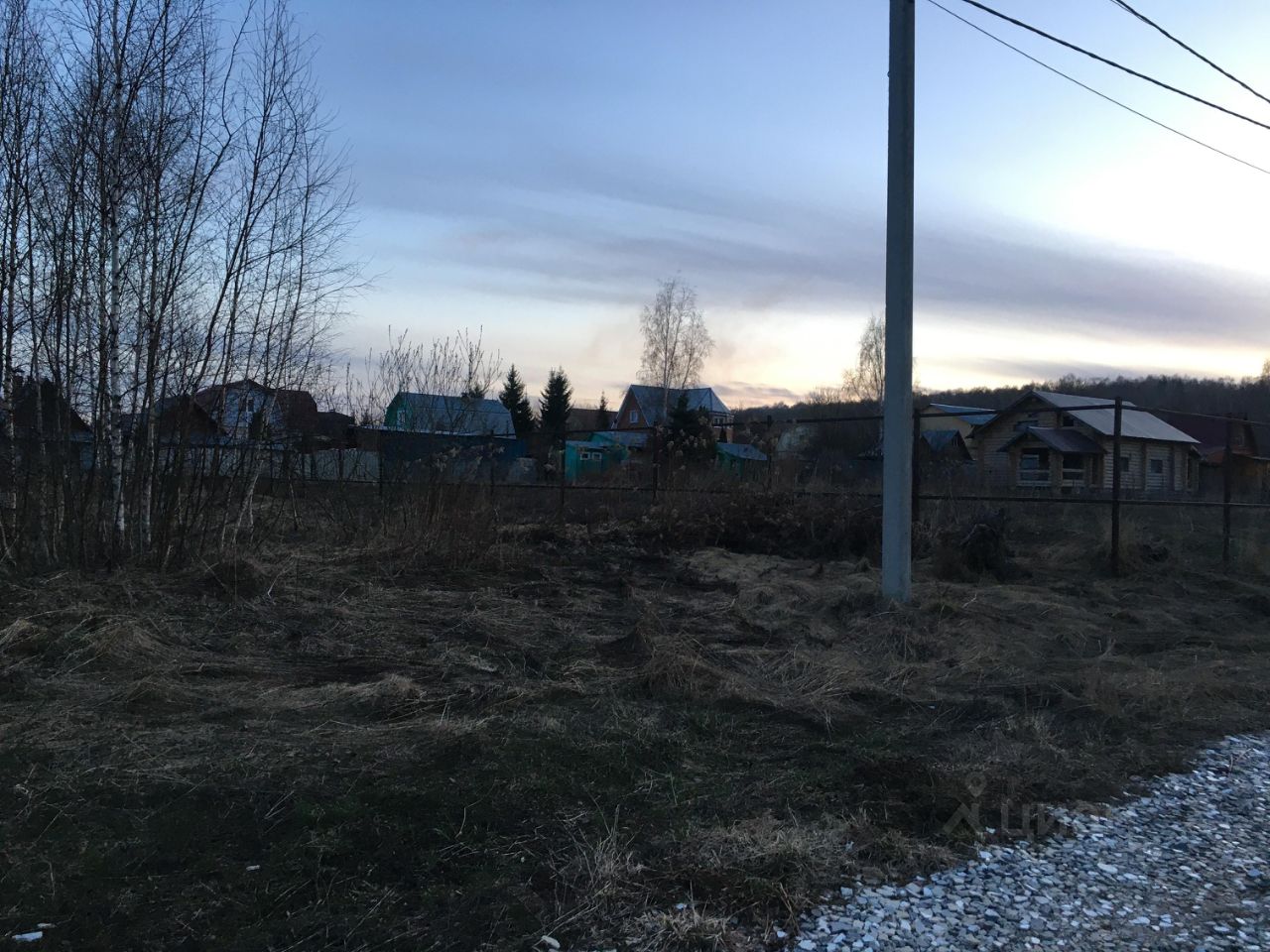Ровный сухой участок без взрослых деревьев. Территория СНТ огорожена, отсыпана дорога.