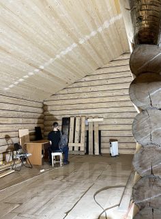 Бревно в среднем 35-40 см в обхвате. Без отопления тепло зимой и приятная прохлада днем.