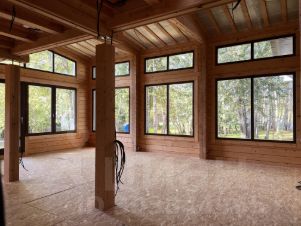 - Дом из клееного бруса, цементно-песчаная черепица braas, деревянное остекление большого формата;