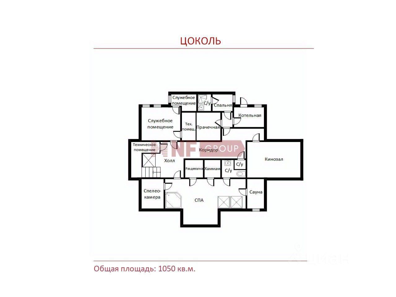 Цоколь: зона СПА: спелеокамера, инфракрасная сауна, душ объемного массажа, тропический душ, раздевалка, хаммам, с/у, домашний кинотеатр, коридор, холл, 3 служебных помещения, прачечная, котельная, комната персонала, с/у персонала, техническое помещение, лифт;