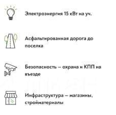 На территории поселка работает охрана, к поселку подведена асфальтовая дорога, по территории - дороги из асфальтовой крошки. Для досуга организованы детская и спортивная зоны.
