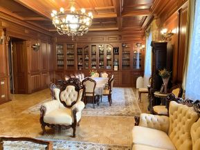 Дома построены по индивидуальному проекту с использованием исключительно качественных дорогих строительных и отделочных материалов. Вся мебель сделана на заказ из массива ценных пород дерева или дорогая импортная мебель. Земельный участок и строения стоят на кадастре, один собственник.