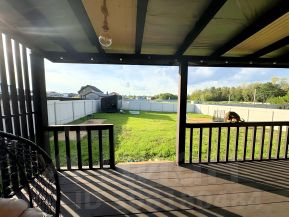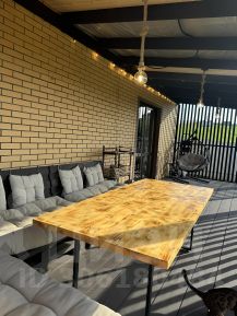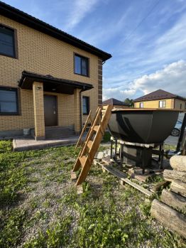 Перед домом мангальная зона, баня, банный чан, площадка для парковки автомобилей. Пристроенная веранда к дому, с выходом через панорамное остекление в кухне-гостиной