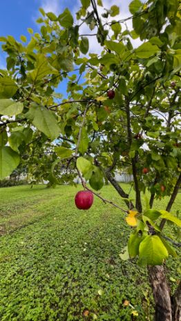 На участке имеются плодовые деревья - яблони, груша.