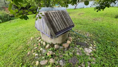 На участке общей площадью 13 соток имеется свой колодец. Вода в дом заведена и разведена. В ванной комнате установлен бойлер, который нагревает воду. Вода сливается в сточную яму.