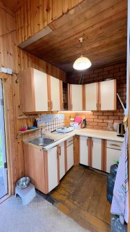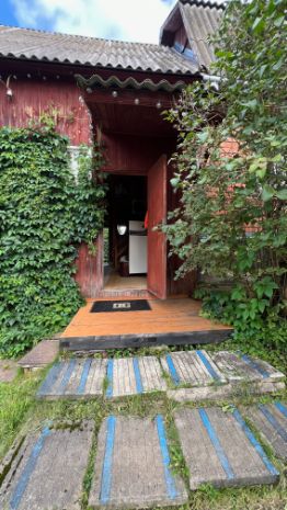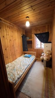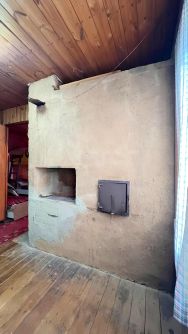 Дом строился для большой семьи и стоит на ленточном фундаменте. Стены сделаны из кирпича снаружи, далее брус, далее утеплитель, внутри обит вагонкой. Дом отапливается русской печкой либо обогревателем.