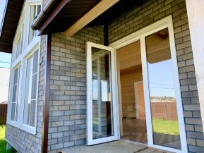Продам новый жилой дом с ремонтом площадью 86 м² и верандой, которую можно застеклить и сделать летнюю кухню.