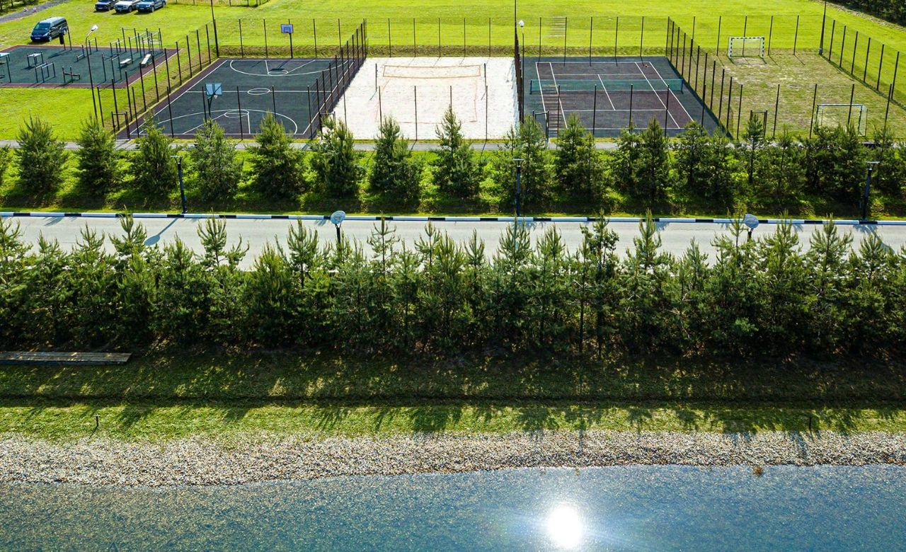 К участку подведены все коммуникации: электричество, газ, центральное водоснабжение, высокоскоростной оптоволоконный интернет и ТВ. В поселке хорошие асфальтированные дороги, свое озеро для купания с оборудованным пляжем, озера для отдыха и рыбной ловли, беседки для BBQ, спортивные и детские площадки.
