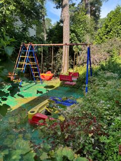 В доме все городские центральные коммуникации: свет, вода, газ с прямыми договорами, интернет. На участке есть гараж на две машины. К гаражу примыкает зона отдыха: беседка и барбекю. Вокруг дома на участке ухоженный сад с вековыми соснами, туи, цветы. Есть детская площадка.