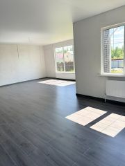 150 м2, каркасный, строился с соблюдением всех нормативов, год постройки весна 2024. Все этапы строительства зафиксированы на фото (предоставляю по запросу). Дом готов, для проживания. Асфальт до самого дома. Зимой дороги чистят, взносов нет. Натяжные потолки, стены отшпаклеваны, ламинат, двери, под каждым окном батареи, два сан. Узла и тд.