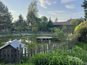 На участке небольшой зарыбленный пред. Можно рыбачить как в собственном пруду, так и за забором в реке и в пруду.