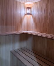 2 этаж: три спальные комнаты (27,5 м2, 21м2 и 15м2), санузел 7,5м2 с сауной 5,2м2 (электрическая печь каменка ).