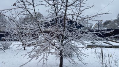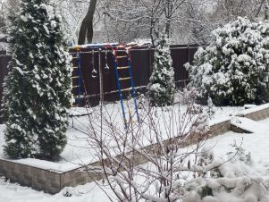Взрослые плодовые деревья и кустарники: яблоня, груши, черешни, вишни, слива, смородина, малина, жимолость, клубника.