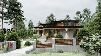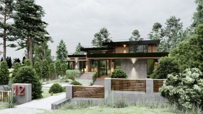 Проект дома с тремя спальнями, расположенного на участке с уклоном, предлагает комфортное и современное проживание для всей семьи. В доме используется рельеф местности, благодаря которому создается уникальная архитектура и функциональность.