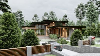 В целом, проект дома с тремя спальнями на участке с уклоном предлагает современный и элегантный дизайн, функциональную планировку и комфортные условия проживания для всей семьи. Этот дом станет идеальным местом для отдыха и релаксации, а также для создания незабываемых моментов с близкими и друзьями.