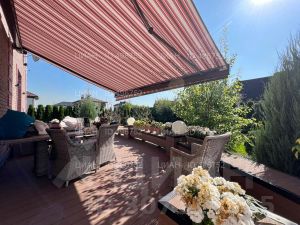 Из столовой выход на просторную террасу, которая закрывается от дождя и солнца маркизой.