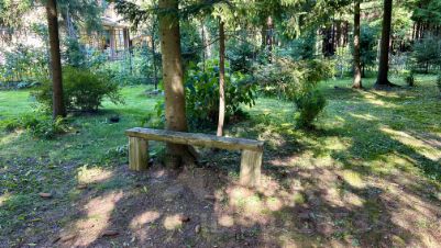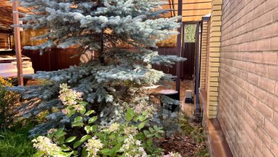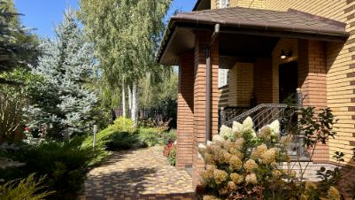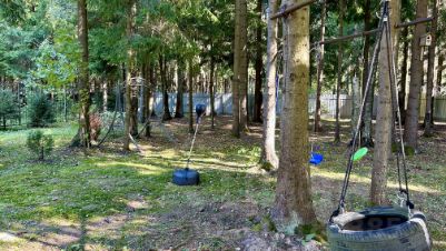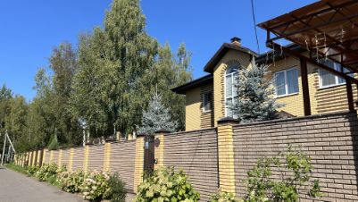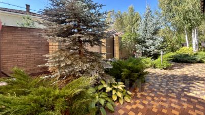 Участок 25 соток правильной формы, огорожен забором на бетонном основании, установлены ворота с электроприводом, автополив, выложены брусчаткой дорожки и придомовая территория. К дому примыкает капитальный гараж, оборудован большой навес во дворе. На участке растут взрослые и молодые деревья: сосны, березки, ели, туи, уложен газон, посажены декоративные растения и фруктовые деревья. По участку бегают рыжие белки.