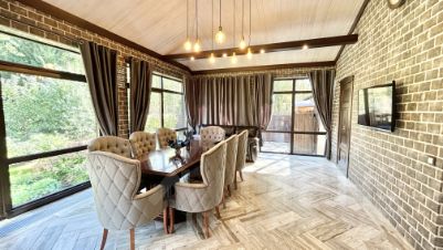 Особенности объекта: просторный светлый дом, с панорамными окнами, застекленной террасой (40 кв.м.), отдельно стоящей бревенчатой баней, ухоженным участком, со своим выходом в хвойный лес.