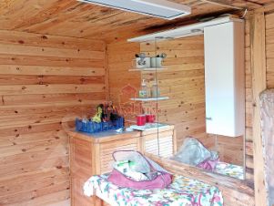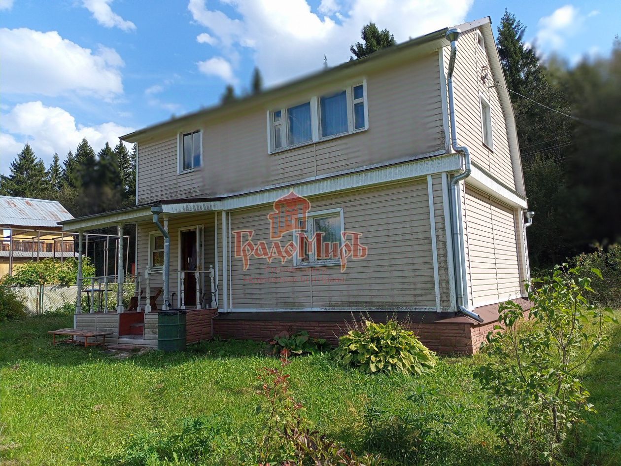 Дом двухэтажный 90 кв.м. Фундамент бетонные блоки, установленные на глубину не промерзания. И положены бетонные плиты в перекрытия первого этажа. Первый этаж бревенчатый, снаружи обшит сайдингом, внутри утеплен и обшит вагонкой. На первом этаже: просторная светлая терраса 15-18 кв.м. с удобной лестницей, ведущей на второй этаж. Из террасы вход в большую комнату 20 кв.м. и еще 2 изолированные спальни по 8-10 кв.м.