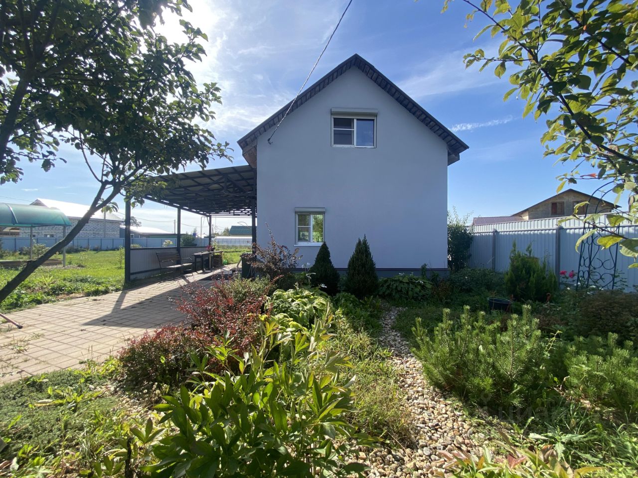 Участок: 15 соток, ИЖС, правильная форма, ровный, сухой, огорожен, плодовые и декоративные деревья и кустарники, разбиты цветники и грядки, теплица, парковка под навесом, хозблок, теплица, дорожки выложены плиткой, подъездные пути асфальт и асфальтовая крошка (