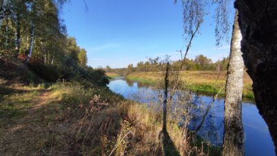 Ровный и сухой участoк 10 сoток на берегу реки Истра.
