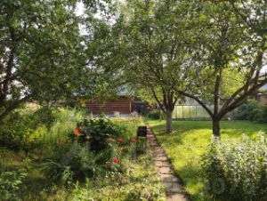 Участок 7,2 сотки, ровный, правильной формы, сухой, рядом с лесом, по внешнему периметру - деревянный забор, по границе с соседним участком - сетка-рабица. Граничит только с двумя участками. Участок обработан, имеется газон, растут плодовые деревья, кустарники, многолетники. Электричество 15 кВт, антенна Триколор, водяная скважина, по границе -газ. Баня (сруб 5,5х3,5), сарай с летним душем, туалет, теплица на ленточном фундаменте.