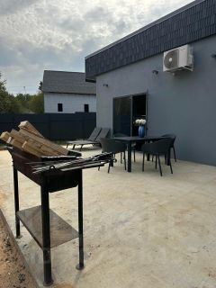 В самом доме, двери профиль дорс с немецкой фурнитурой, система приточно-вытяжной вентиляции, теплый пол, современная кухня, французская водоочистка, лучшие из возможных окон полностью окрашенных в цвет, с отражающим эффектом максимальной толщиной профиля и стекла, кондиционер и многое другое, полы бельгийский кварц-винил, итальянская плитка, сантехника европейских брендов. Кровля пвх мембрана и пир утеплитель технониколь с уклоном на заднюю стену. Видеонаблюдение с удаленным доступом, интернет мэш система, единая сеть по всему дому. Вся мебель и бытовая техника новая.