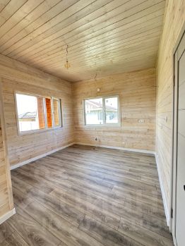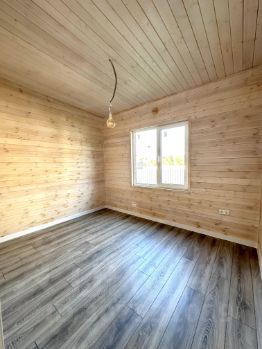 Дом продается в полной готовности, осталось только завести мебель и жить, на полу ламинат, в мокрой зоне - плитка, стены и потолок обшиты вагонкой высшего сорта и окрашены экологичным защитно-декоративным покрытием для древесины.
