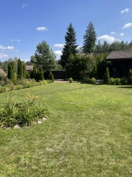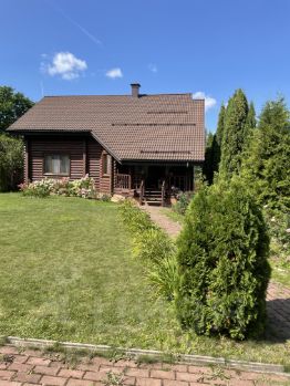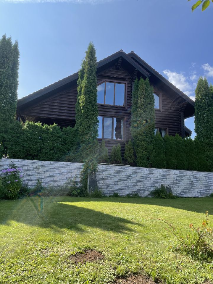 Дом из оцилиндрованного бревна диаметром 26 см со вторым светом, очень теплый, построен в 2012 году, крыша из натуральной немецкой черепицы BRAAS.