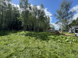 Участок необычной формы, есть где поставить дом, баню и разгуляться фантазии ландшафтному дизайнеру.