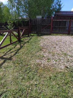 Участок в центре жилого поселка, N 26, сухой, светлый, есть небольшой полностью оборудованный мебелью и техникой летний домик, входит в стоимость. Электричество 15 кВт, септик. Реальному покупателю торг.