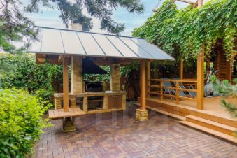 - Организована зона барбекю под крышей, где можно готовить блюда в любое время года.