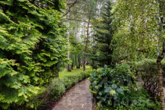 Участок утопает в зелени, в знойный период можно отдыхать в тени раскидистых ветвей деревьев.