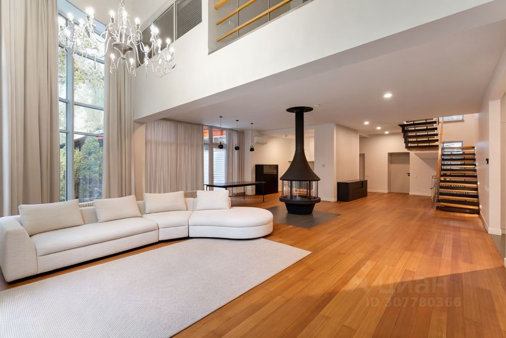 Панорамные окна, второй свет и высокие потолки делают дом невероятно светлым, просторным и уютным.