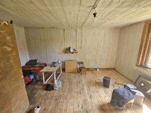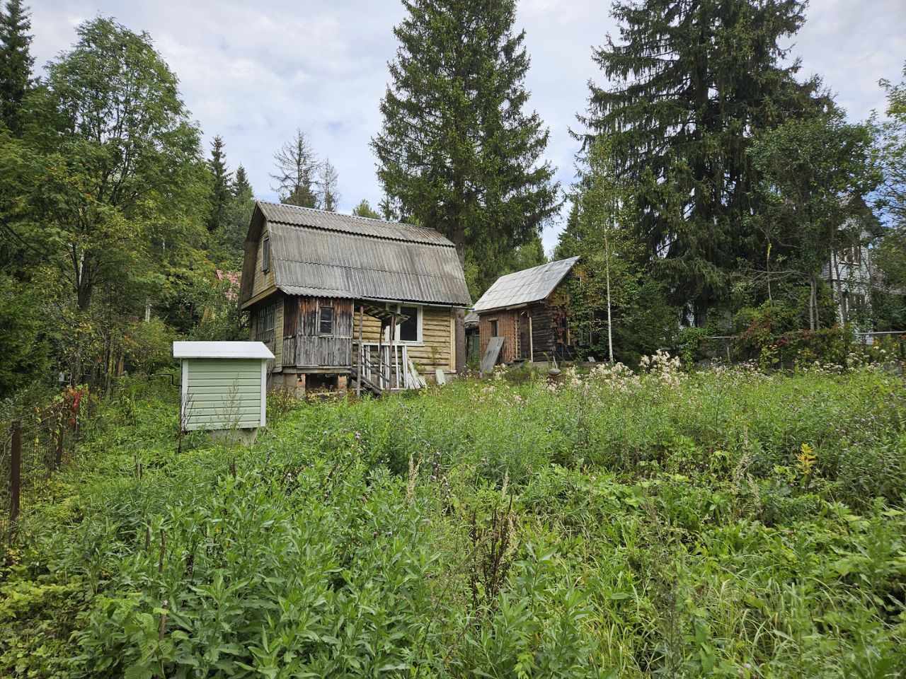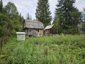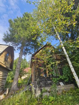 Угловой участок 6 соток в окружении леса, очищен от старых кустарников и деревьев, готов к новым посадкам. Почва плодородная. Территория огорожена металлической сеткой. На территории двухэтажный домик 61 кв.м из экологически чистых материалов (бревно), на крепком ленточном фундаменте. Мини баня (без оснащения) и хозяйственные постройки. В доме имеется печь. На участке есть колодец с водой, также есть общий колодец с питьевой водой для жителей СНТ. На краю участка размещен септик из бетонных колец. Канализация подведена к дому. Электричество увеличено до 8 кВт. Газ проходит по границе СНТ. На участке растет взрослая ель и молодая береза.