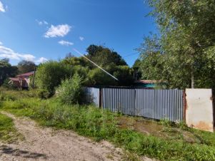 Земельный участок огорожен профнастилом, распашные ворота. На территории имеются хозпостройки.