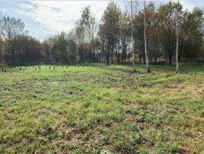 Ровный участок, квадратной формы, с лесными деревья по границе.