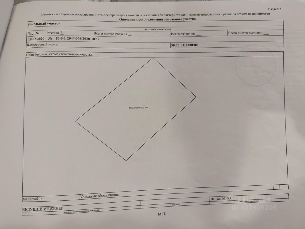 Кадастровый номер участка 50:23:0110208:*** указал продавец