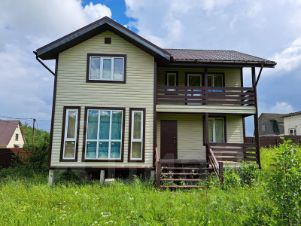 Продаётся полностью новый каркасный дом 128,8 кв.м. на участке в 13 соток. На участке есть скважина, жилой вагончик 8х3м и теплица 7х3м. Электрический щиток и газ по границе участка. Участок правильной, прямоугольной формы 50х25м, ровный. Дом для круглогодичного проживания с утеплением стен 200мм. Окна - стеклопакеты. Полы в доме на всех этажах - ламинат. Дом внутри обшит широкой вагонкой имитацией бруса. На террасе первого этажа и балконе второго этажа уложена влагостойкая террасная доска из ДПК (древесно-полимерного композита). Туалетные комнаты на первом и втором этажах. Есть кладовая комната на втором этаже. Входная дверь металлическая с двумя замками и декоративной панелью внутри. Участок огорожен металлическим забором из 2м профлиста С20 коричневого цвета. Ворота с автоматическим открыванием и закрыванием. С внешней стороны дом обшит пластиковым сайдингом. Крыша дома - металлочерепица. Участок расположен в тихом месте 65км от МКАД. Проезд до участка по новой Калужской трассе, полностью асфальтированной. Фундамент дома - бетонные сваи 150х150 на глубину 3м. В собственности 5 лет. Один собственник.