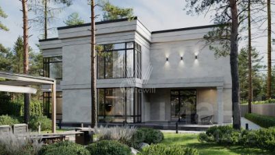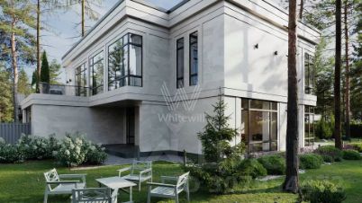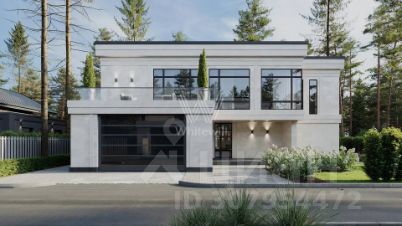 Лесные зори. Загородный дом площадью 520 м² по проекту foster dream расположен на лесном участке 11,1 сотки. Лаконичный фасад с панорамными окнами и плоской кровлей облицован натуральным камнем серых оттенков. В коттедже выполнена отделка white box — осталось лишь выбрать финишные покрытия, мебель и текстиль. В каждой спальне предусмотрен свой санузел, на втором этаже разместили просторную террасу. В конутре дома расположен гараж на 2 машины. На участке выполнен ландшафтный дизайн, вымощена площадка перед домом и высажены кустарники.